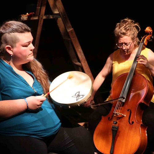 Guidées par les saisons et la roue de médecine autochtone, ce cercle sacré, trois artistes se réunissent sur scène. Une violoncelliste abitibienne, une comédienne et musicienne d’origine française et anishinaabeg et une metteure en scène émigrée de Pologne façonnent un espace immersif tissé de sons, d’échos, de textures, de mouvement et de poésie pour tous les sens. Tambour, violoncelle, voix, souffle et gestes résonnent ici ensemble, comme dans une forêt imaginaire et mythique, où les jeunes enfants pourront se frayer un chemin à travers les paysages sonores.